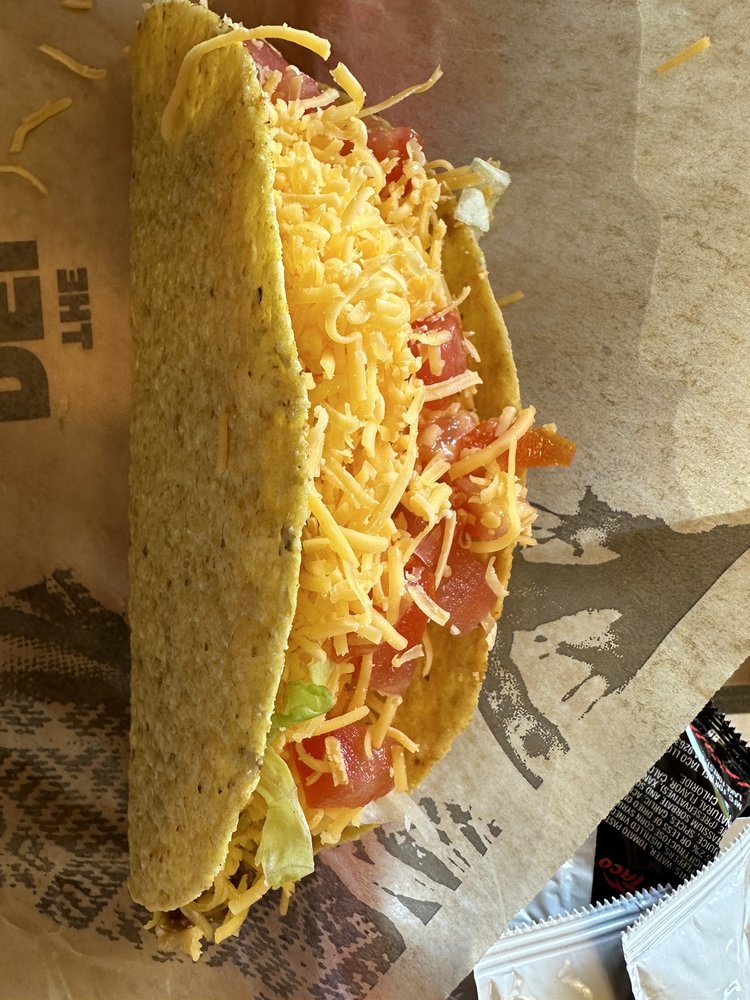 The Del Taco is inspired by the original and loaded with more of everything you love, like more seasoned beef, fresh house-grated cheddar cheese, crisp shredded lettuce and fresh diced tomatoes in a bigger, crunchy corn shell or a warm flour tortilla.