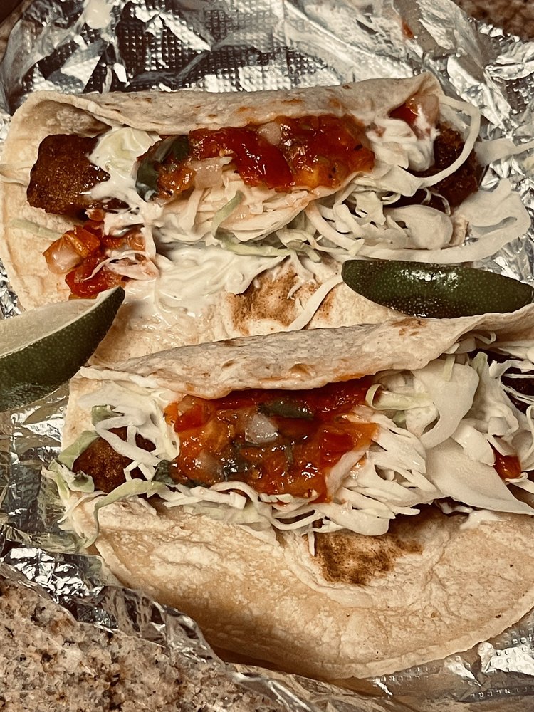 Beer Battered Crispy Fish Taco made with Stone Buenaveza Salt & Lime Lager Meal